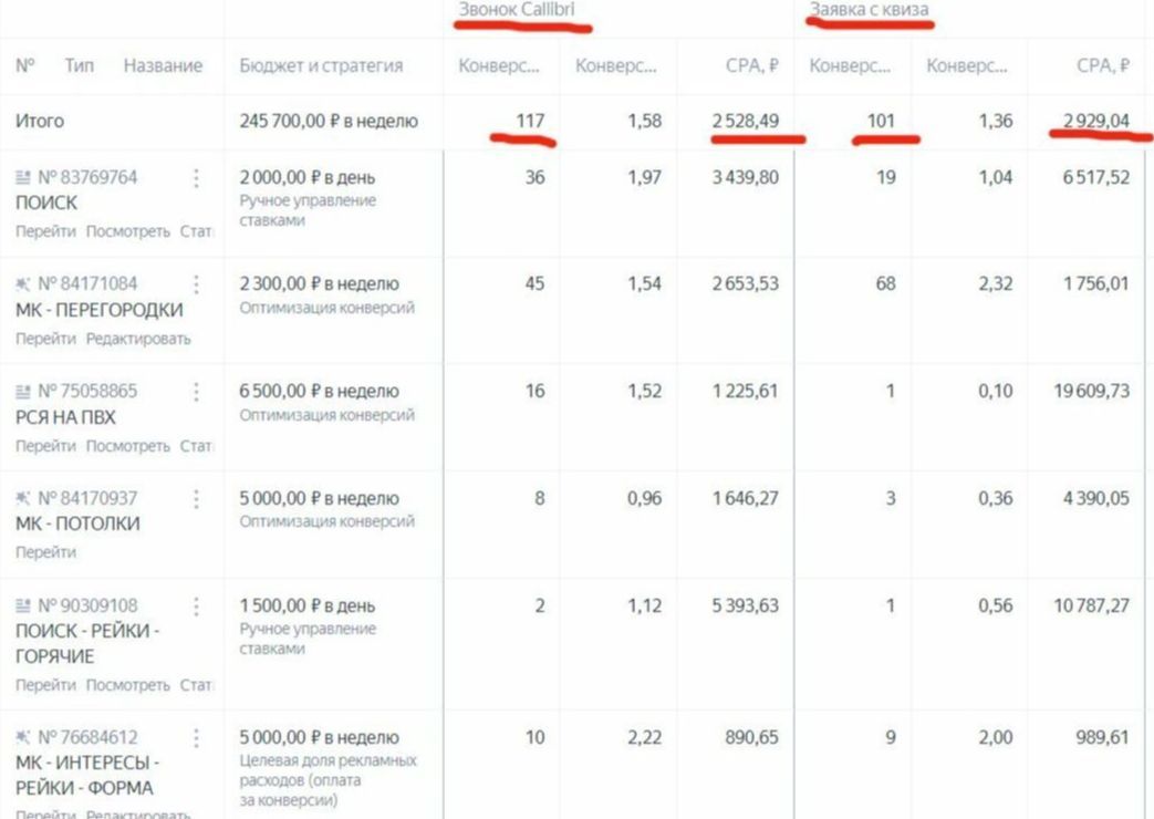 117 звонков и 101 заявка с форм по Москве и области при расходе в 295 000р