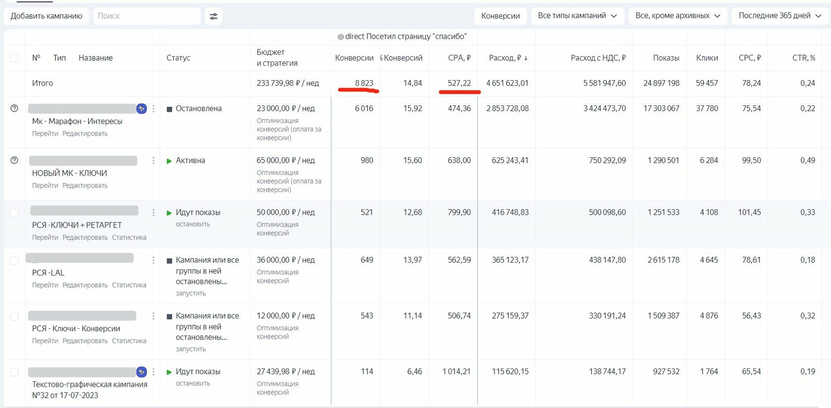 Оптимизация кампаний